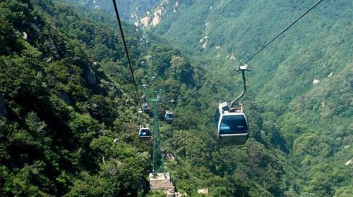 ▲旅游旺季乘纜車上山一定得從前山上,前山玉屏索道是多線循環(huán)式6人一車,8分鐘到達(dá)上站,即使人多也快一點。