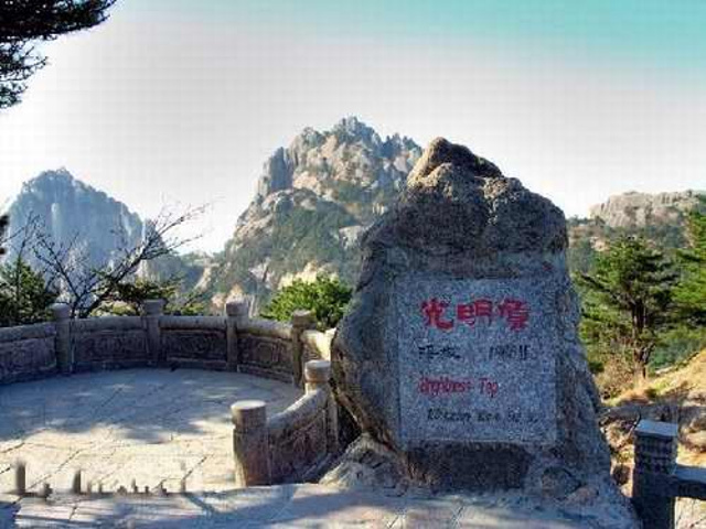 光明頂看日出→北?!锕馔ぁ鍥雠_→獅子峰→清涼臺→姜太公釣魚→夢筆生花→黑虎松→始信峰→白鵝嶺纜車或步行下山(步行需謹(jǐn)慎)下山到云谷寺乘景區(qū)交通車至客車站