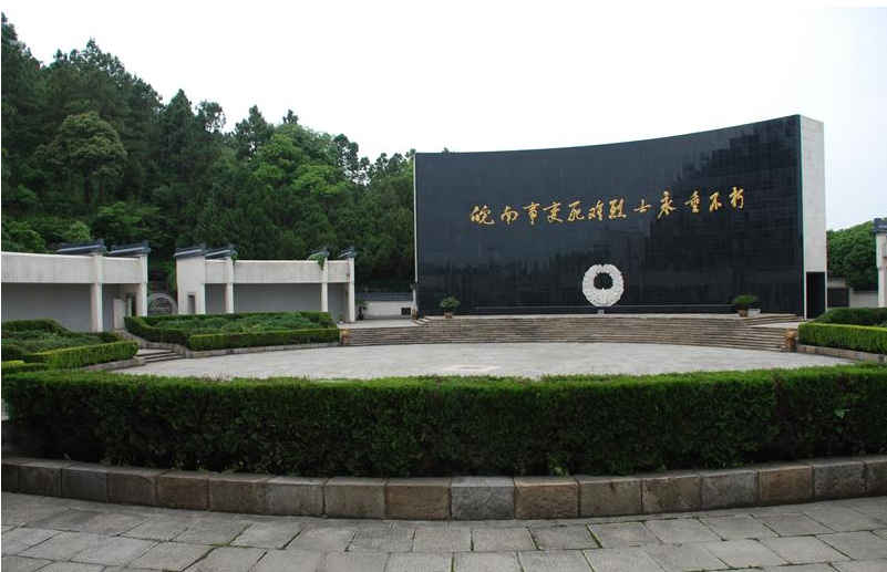 簡 介:1990年初,為紀(jì)念皖南事變新四軍將士殉難五十周年而修建,占地十五公頃,建筑面積7000平方米。皖南事變烈士陵園傍涇川,鄰城區(qū),環(huán)境優(yōu)美,入口跨公路建有7米高石闕,形成壯觀的入口空間。進(jìn)入陵園,沿臺階行約30米,有一小型廣場,正對面擋土墻上鑲嵌葉飛題寫“皖南事變烈士陵園”字碑。從小廣場右轉(zhuǎn),經(jīng)50米長神道,拾級而上,通過兩個石闕形成的神門,進(jìn)入主碑紀(jì)念廣場。廣場由紀(jì)念碑、紀(jì)念廊、無名烈士墓等組成。從山頂俯視,紀(jì)念廣場與外圍的花圃組成一獻(xiàn)給烈士的巨大花圈;從遠(yuǎn)處眺望,紀(jì)念廊和名人題字廊高低錯落,形態(tài)各異,白色馬頭墻簇?fù)碇薮蠹o(jì)念碑身。碑高12.36米、寬27米,碑面鑲鄧小平“皖南事變死難烈士永垂不朽”題詞。碑下方為一漢白玉雕刻的花環(huán),環(huán)周白色紀(jì)念廊內(nèi),鐫刻著新四軍軍歌及《皖南事變烈士紀(jì)念碑碑記》。碑后為無名烈士墓,墓室四壁鋼筋水泥澆鑄,中間為墓池,池中有潔白大理石石棺,池后是祭壇,壇上燃燒著常年不息的火焰,象征著先烈們革命精神永不熄滅。整個陵園莊嚴(yán)、肅穆、凝重。為全國重點(diǎn)烈士紀(jì)念建筑物保護(hù)單位。