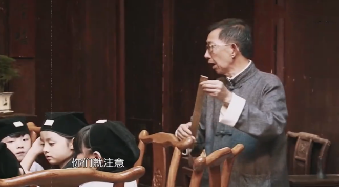 主持開(kāi)蒙禮的是湖南衛(wèi)視《一年級(jí)》節(jié)目的嘉賓戒尺先生,學(xué)文化,禮當(dāng)先