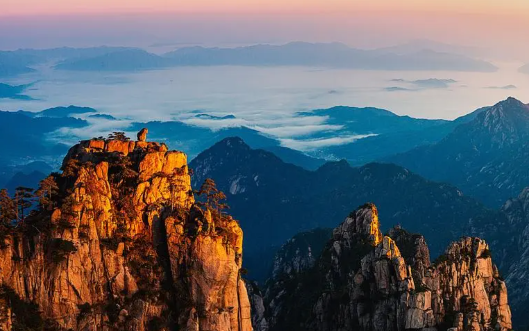 視天氣情況賞黃山日出,北海游覽夢(mèng)筆生花、十八羅漢朝南海,登始信峰、遠(yuǎn)觀猴子觀海、賞黃山奇松——黑虎松、連理松、龍爪松、豎琴松、探海松,云谷寺