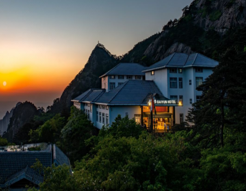 黃山白云賓館位于光明頂下,蓮花峰前,鰲魚(yú)峰、西海大峽谷群峰之間,他是離光明頂較近的酒店,掩映于青山翠松中,微風(fēng)流云,若隱若現(xiàn)。抖音千萬(wàn)點(diǎn)擊量視頻——西海大峽谷“網(wǎng)紅小火車(chē)”離賓館約5分鐘路程。