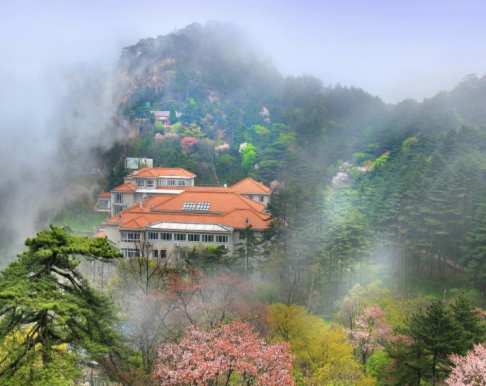 賓館有自然園林全要素的景觀,光明頂、蓮花峰、海心亭、白云溪、步仙橋、云山佛壁、西海大峽谷懸崖步道等多處景點(diǎn)環(huán)繞。春曉200年古櫻參天、繁花似錦、流水潺潺,秋夕300年佛壁灑金、紅葉盡染、云海無(wú)邊,頗有杜牧詩(shī)中“遠(yuǎn)上寒山石徑斜,白云深處有人家”的悠遠(yuǎn)意境