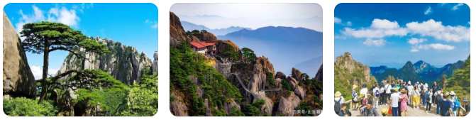 子峰、夢筆生花、十八羅漢朝南海,在始信峰觀景臺賞始信峰、石筍峰、探海松等。經(jīng)連理松、黑虎松,從白鵝