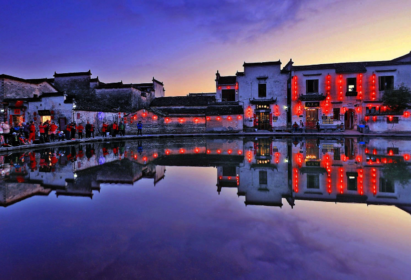 各地乘高鐵、前往最美的地方---黃山市;抵達(dá)黃山北站,安排接站后,安排接站;車赴世界文化遺產(chǎn)【宏村】景區(qū),游覽桃花源里人家----世界文化遺產(chǎn)、中國牛形古村落—【宏村】,全村現(xiàn)完好保存明清民居140余幢,承志堂“三雕”精湛,富麗堂皇,被譽(yù)為民故宮。 晚上入住宏村民宿、步行前往可沿途欣賞秀麗的湖光山色,擁有徽派建筑特色,青磚,黛瓦,馬頭墻,給人清雅明快的美感,黑白分明,韻味無窮,一種清淡樸素之風(fēng)展現(xiàn)無疑。白加黑深度游覽畫里宏村,感受夜幕下的徽州美景 |