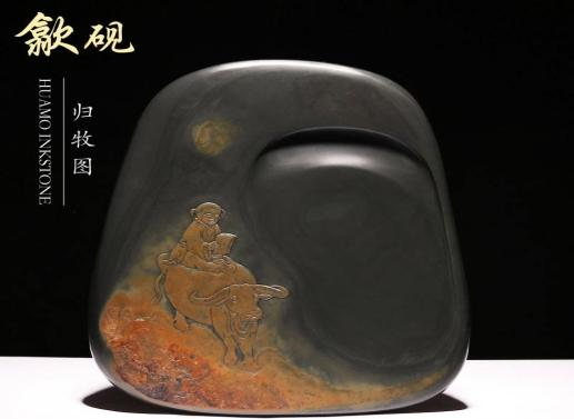 歙硯,全稱歙州硯,中國四大名硯之一,產(chǎn)于安徽黃山山脈與天目山、白際山之間的歙州,歙硯石的花紋結(jié)構(gòu)十分突出,分為魚子紋、羅紋、金暈紋、眉紋、刷絲紋等類型。由于其礦物粒度細(xì),微粒石英分布均勻,故有發(fā)墨益毫、滑不拒筆、澀不滯筆的效果,受到歷代書法家的稱贊。造型渾樸,浮雕、淺浮雕、半圓雕等手法是歙硯臺的工藝風(fēng)格和特點。