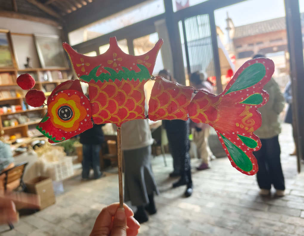 由非遺老師講解徽州魚燈文化→傳習(xí)室觀摩師傅制作魚燈→師傅準(zhǔn)備魚燈骨架、畫筆、顏料→現(xiàn)場描繪講解→學(xué)員描繪→拿著獨(dú)屬于自己的魚燈,在夜色下的徽州沉浸式感受嬉魚燈;
