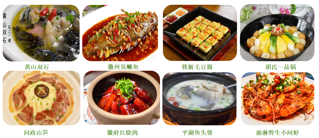 4.百變徽宴 場(chǎng)景不同驚喜亦不同,庭院戲曲晚宴,徽州農(nóng)家柴火灶,美食小吃,太平湖魚(yú)宴,中華徽菜名店