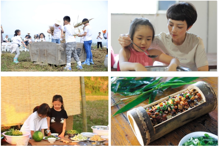 在這個(gè)環(huán)境和氛圍中,所有的重心都在親子間彼此的關(guān)注,----南屏生態(tài)農(nóng)場(chǎng),插秧、打谷、竹筒飯。