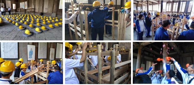 12:30-16:00 【呈坎】呈坎是全國獨一無二保存最完好的明代古村落,至今完整保存著宋、元、明等朝代具有很有歷史研究價值的古建筑群體。這里的古建筑匯集了徽派不同風(fēng)格的亭、臺、樓、閣、橋、井、祠、社及民居,精湛的工藝及巧奪天工的石雕、磚雕、木雕,把古、大、美、雅的徽派建筑藝術(shù)體現(xiàn)的淋漓盡致,為古徽之最。 徽州古建搭建課程(寶綸閣) 1、【徽州古建探索及搭建課程】 2、通過學(xué)習(xí)并了解呈坎景區(qū)不同朝代的建筑風(fēng)格,應(yīng)用提供的建筑模型現(xiàn)場搭建。 3、十人一組,分組進行古建的搭建